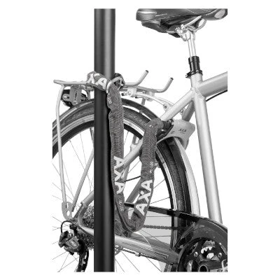 La chaîne antivol RL 100 Axa est utile pour améliorer la sécurité de votre vélo puisqu’elle permet de l’attacher à un point fixe. Il vous suffit de passer la chaine autour du mobilier urbain, d’insérer la chaîne dans son réceptacle, d’actionner l’anse puis de verrouiller l’antivol (photo 4). En une opération, votre vélo est ainsi protégé par 2 antivols. Nous recommandons de toujours attacher votre vélo à un point fixe, ancré dans le sol.