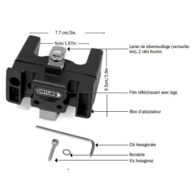 La fixation sur guidon Ortlieb avec serrure permet de monter en quelques secondes votre sacoche sur le guidon de votre vélo. Le produit est livré avec 2 clés qui sont recommandables en cas de perte. Grâce à la serrure, il vous suffit d’un tour de clé pour verrouiller ou déverrouiller la sacoche à la fixation. Avec cette sécurité, vous pouvez laisser sereinement votre sacoche sur le cintre, car il est impossible de l’enlever sans la clé.