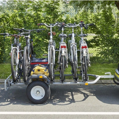 Idéale pour transporter jusqu’à 6 vélos, cette remorque vélo Titan Mottez s’installe rapidement sur la boule d’attelage de votre voiture. Les vélos se fixent sur les gouttières et sur les bras de support. Ces bras de support se rabattent pour pouvoir transporter d’autres équipements comme vos bagages. Compact, ce porte vélo se range facilement en position verticale. L’essieu est lourd, il pèse 200 kg et va protéger vos vélos. Son poids va permettre de supprimer les rebonds éventuels de la remorque et ainsi éviter que vos vélos soient trop secoués pendant les transports. La remorque peut supporter un poids allant jusqu’à 110 kg. Attention, elle ne permet pas le transport de vélos à assistance électrique.