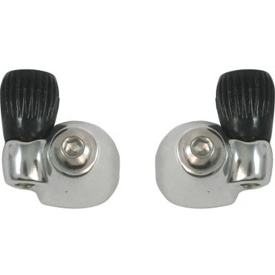 En aluminium, ces butées légères sont montées sur plot à braser. Elles sont livrées par paire. Chaque pièce dispose d’une molette pour régler la tension des câbles de dérailleur.